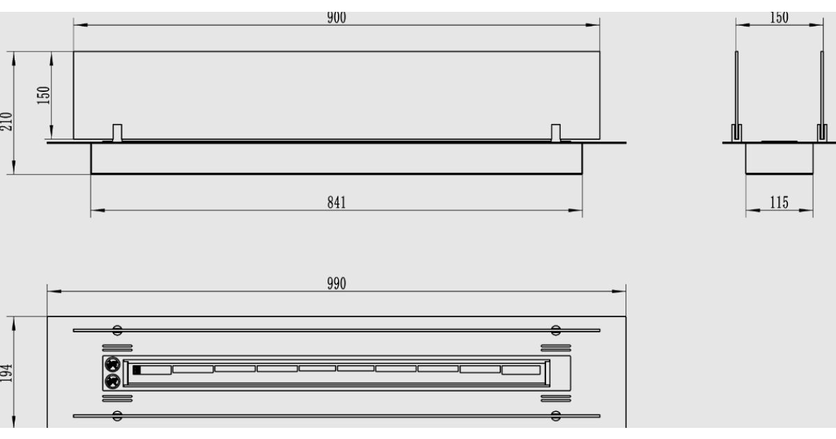 Einbaubarer Bioethanol-Kamin (100 cm):