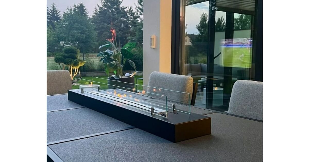 - Biokamin-Einsatz (120 cm, mattschwarz, mit Glas)