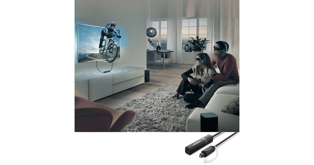 Ich verwende es mit Philips Fidelio Kopfhörern. Dieser Optisch-zu-Bluetooth-Konverter macht seinen Job. Laut Beschreibung kann er auch zwei Kopfhörer gleichzeitig verwalten. Das habe ich noch nicht ausprobiert.