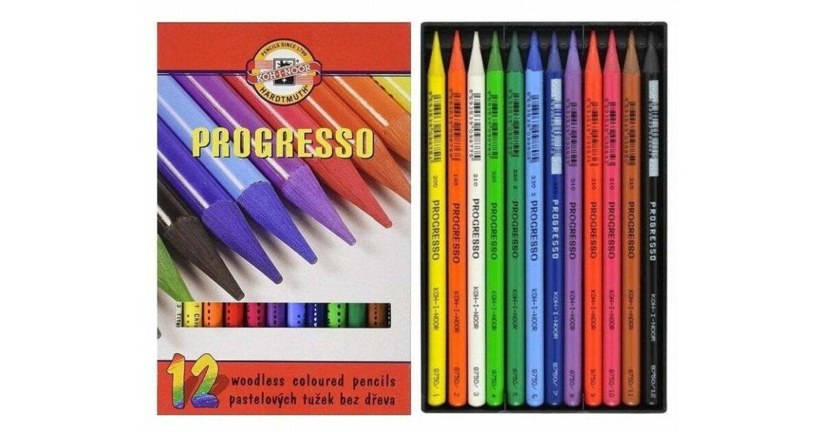 Leuchtende Farben und präzises Zeichnen – entdecke die holzfreien Buntstifte KOH-I-NOOR Progresso! Erhältlich in 12 verschiedenen Farben, perfekt zum Zeichnen, Malen und für kreative Projekte.