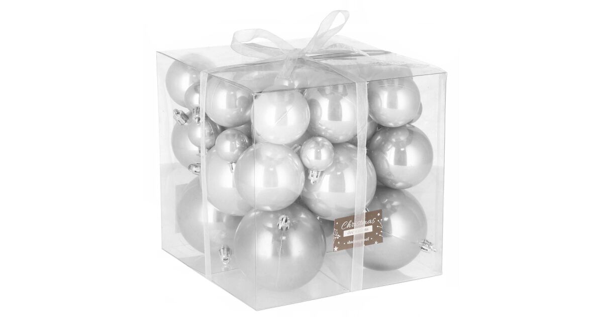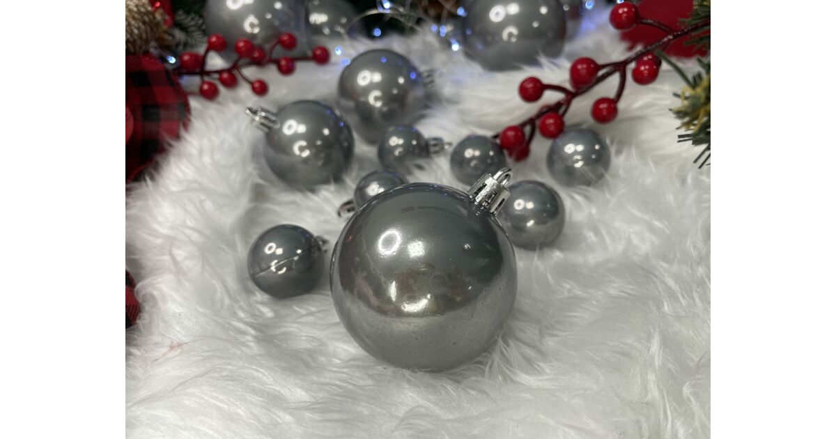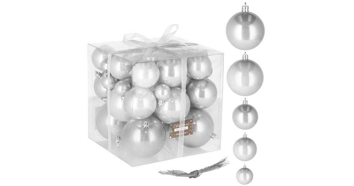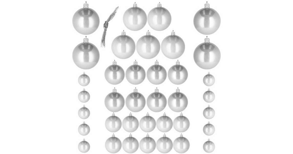 Verzaubere dein Zuhause in eine festliche Atmosphäre mit diesem eleganten, perlglanzgrauen Weihnachtskugel-Set! ✨ Dieses 37-teilige Set enthält Kugeln in verschiedenen Größen, sodass du deinen Weihnachtsbaum mühelos schmücken kannst. Die Kunststoffkugeln sind bruchsicher und somit auch in Familien mit Kindern sicher zu verwenden. Die Perlglanzoberfläche schimmert wunderschön im Licht des Weihnachtsbaums.