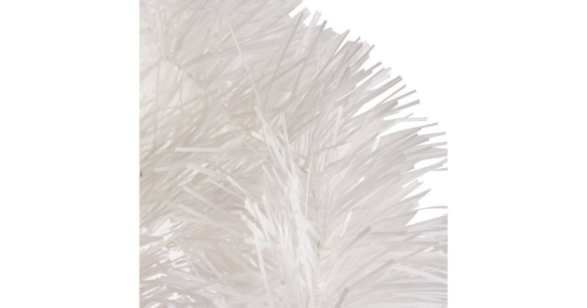 Die weiße Farbe hebt die grünen Zweige des Weihnachtsbaums wunderschön hervor und sorgt in Kombination mit den Lichtern für eine wirklich festliche Stimmung. Die glänzenden Nadeln der Girlande reflektieren das Licht und lassen den Baum noch strahlender erscheinen.