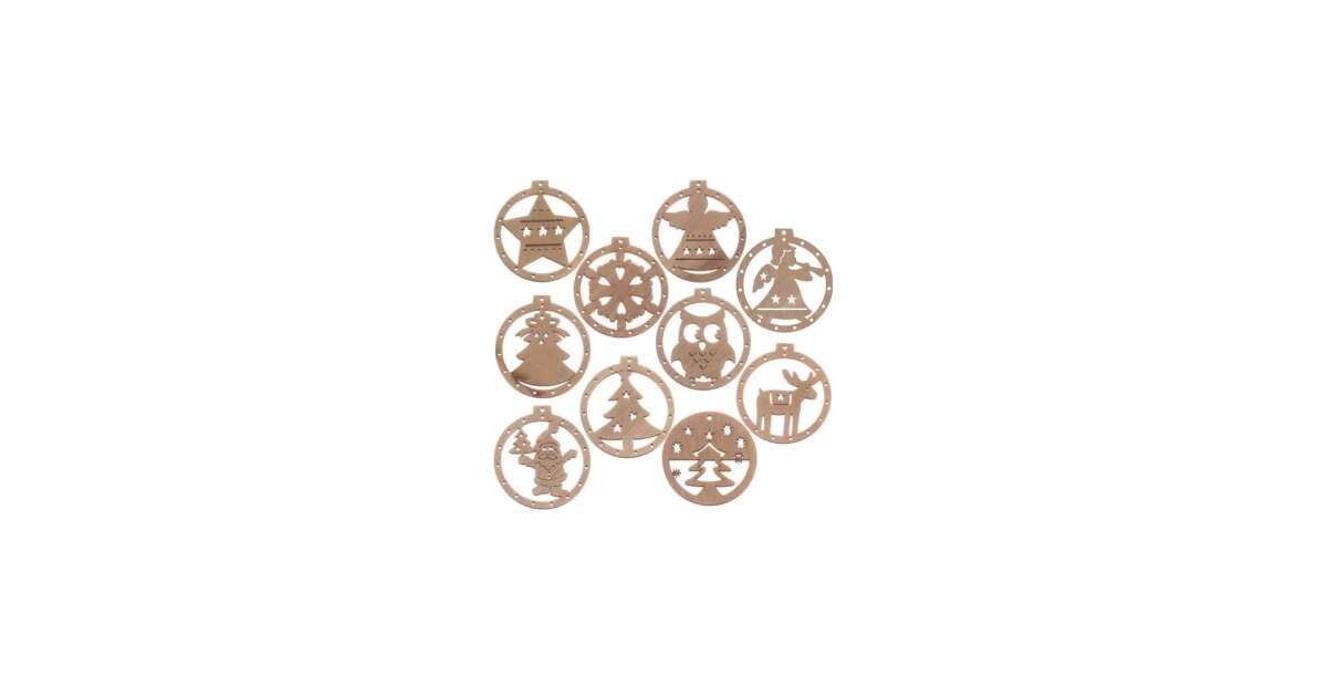 Mach dich bereit für Weihnachten mit diesem 10-teiligen Weihnachtsbaumschmuck-Set aus Holz! Jeder Anhänger ist einzigartig und mit ausgeschnittenen Weihnachtsmotiven versehen, wie z.B. Weihnachtsmann, Rentier, Weihnachtsbaum, Stern, Schneeflocke und Eule. Das natürliche Holzmaterial verleiht deinem Weihnachtsbaum Wärme und rustikalen Charme.