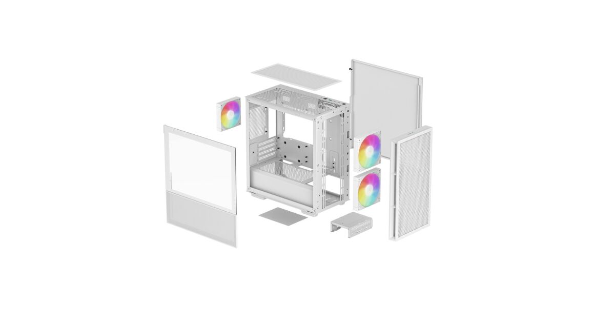 Luftstrom der nächsten Generation: das DeepCool CH360 White Tempered Glass EnclosureDeepCools neues mATX-Gehäuse, das CH360, nutzt die neueste Technologie, um einen hervorragenden Luftstrom und ein modernes Design in einem schlanken, funktionellen Paket zu bieten. Die einzigartigen Hybrid-Seitenteile bestehen aus gehärtetem Glas und Mesh, so dass sie nicht nur einen atemberaubenden Blick in das Herz des Systems ermöglichen, sondern auch eine hervorragende Belüftung für moderne Grafikkarten bieten.Grundlegende Eigenschaften:Gehäusetyp:Mini-TowerFarbe:WeißHauptmaterialien:ABS, SPCC, gehärtetes GlasKompatible Motherboards:µATXFenster-Kit:JaMesh-Front:JaInnenabmessungen und Kompatibilität:Maximale Grafikkartenlänge:320 mmMaximale CPU-Kühlerhöhe:165 mmMaximale Netzteillänge:160 mmKühloptionen:Vorderseite: 2 x 140-mm-ARGB-Lüfter vorinstalliert, oder 3 x 120-mm-Lüfter können installiert werdenRückseite: 1 x 120-mm-ARGB-Lüfter vorinstalliertVorderseite: 2 x 120-mm-Lüfter können installiert werden, oder 2 x 140-mm-Lüfter können installiert werdenAnschlüsse und E/A-Panel:Frontanschlüsse: 1x Audio, 1x USB-A 3.1 x USB-A 3.2 Gen 1 (5 Gbit/s), 1x USB-C 2.0 (480 Mbit/s)Weitere Merkmale:Kabelmanagement: 26 mmMagnetischer Luftfilter: jaNetzteilabdeckung: 2 x 120-mm-Lüfter können installiert werdenBeleuchtung: RGBRGB-Anschlüsse: adressierbarer RGB-HeaderRGB-Kompatibilität: AURA Sync, Mystic Light, RGB Fusion, RGB LEDWasserkühlungsunterstützung: jaUnterstützte Radiatorgrößen:Vorderseite: 120/140/240/280/360 mmVorderseite: 120/140/240 mmRückseite: 120 mmAbmessungen und Gewicht:Fassungsvermögen: 40 lAbmessungen (B × T × H): 21,5 cm x 43,1 cm x 42,8 cmGewicht: 6 kgEingeschränkte Informationen & Fakten:DeepCool ist seit langem für seine innovativen Kühllösungen und stilvollen Gehäuse bekannt. Die Marke ist bestrebt, an der Spitze des technologischen Fortschritts zu bleiben und Produkte anzubieten, die hohe Leistung mit Stil verbinden. Das Modell CH360 ist besonders ideal für diejenigen, die ein kompaktes und praktisches Gehäuse mit einem geräumigen Innenraum suchen.