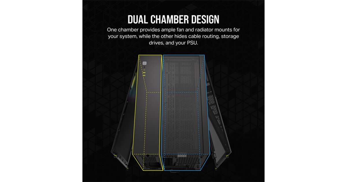 - Zwei-Kammer-Design: Ein Fach bietet jede Menge Platz für Lüfter und Radiatoren, während das andere Kabel, Laufwerke und das Netzteil (PSU) versteckt. Die Kabelverlegung wird zum Kinderspiel! 🧹