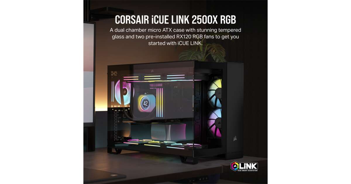 Dieses Corsair iCUE Link 2500X RGB ist ein beeindruckendes Micro-ATX-Gehäuse mit einem genialen Zwei-Kammer-Design, das durch seine Seitenteil aus gehärtetem Glas und zwei vorinstallierte iCUE Link RX120 RGB Lüfter besonders hervorsticht. Mach dich bereit für atemberaubende RGB-Beleuchtung und erstklassige Kühlung! 💨