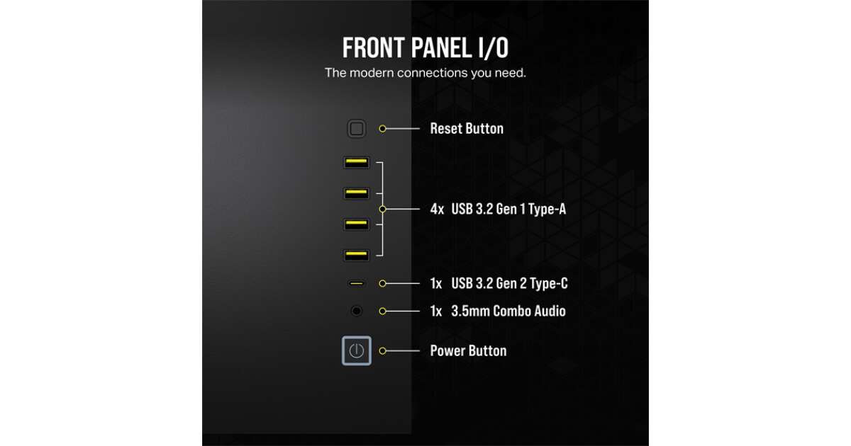 - Frontpanel I/O: 4x USB 3.2 Gen 1 Typ-A, 1x USB 3.2 Gen 2 Typ-C, 1x 3,5 mm kombinierte Audiobuchsen für komfortables Arbeiten. 🔌