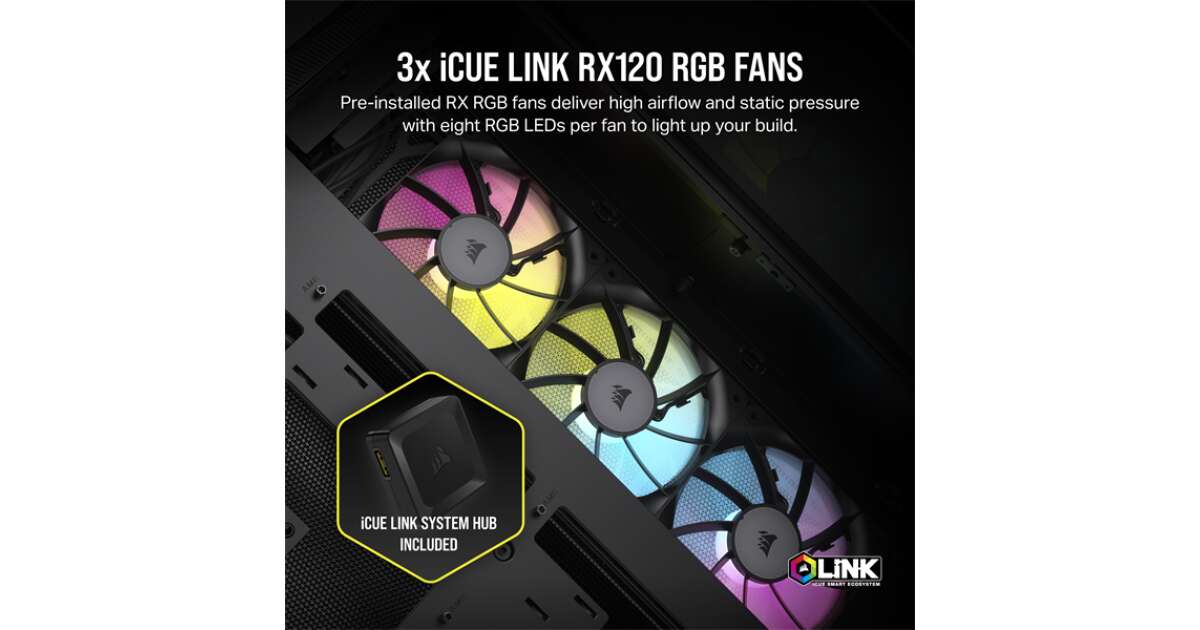 - Drei vorinstallierte iCUE Link RX120 RGB Lüfter: Hoher Luftdurchsatz und statischer Druck für eine effektive Kühlung. 💨
