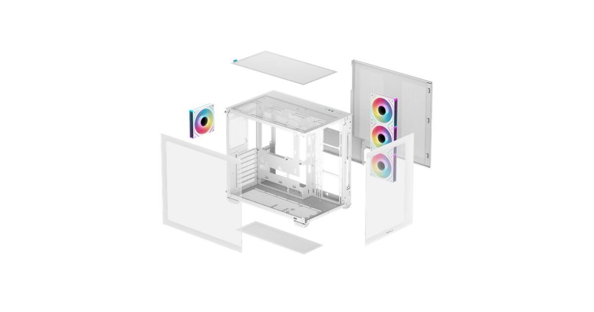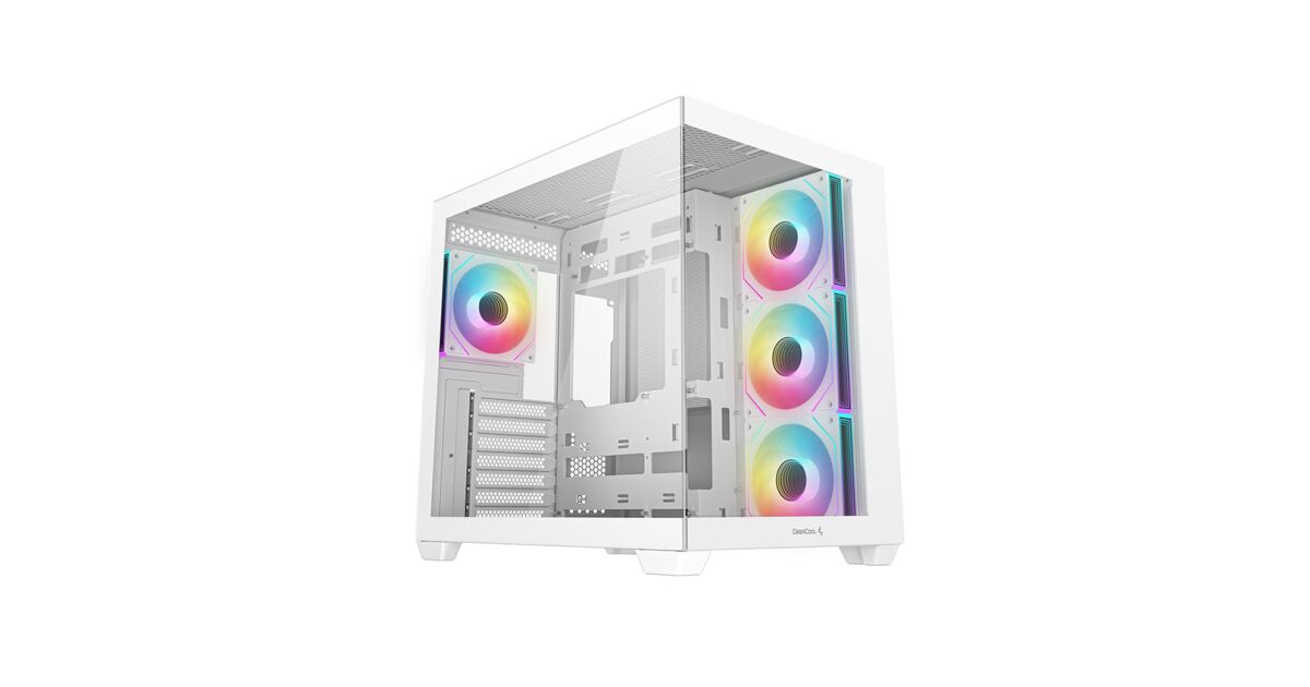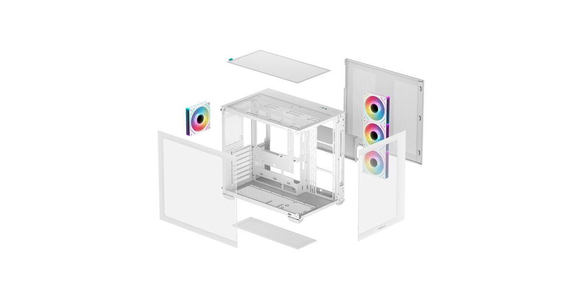Elegantes und effizientes ComputergehäuseDas DeepCool CG530 ist ein Midi-Tower-Computergehäuse, das eine hervorragende Kompatibilität und Luftzirkulation bietet. Das breite Design und das Zweikammersystem optimieren die Kühlung durch separate Luftkanäle für das Netzteil und die Festplatten. Die rückwärtigen Anschlüsse der Motherboards lassen sich sauber integrieren, um ein sauberes und aufgeräumtes System zu schaffen.Hervorragende Ästhetik und thermische EffizienzDrei PWM-ARGB-Lüfter an der Seite und ein Lüfter an der Rückseite optimieren nicht nur die Wärmeabfuhr, sondern schaffen auch eine einzigartige Gaming-Atmosphäre. Die ARGB-Beleuchtung macht das Gehäuse zu einem echten Vorzeigeobjekt.Kompatibilität und ErweiterungsmöglichkeitenDas Gehäuse verfügt über 7 Erweiterungssteckplätze, die ausreichend Platz für mehrere GPUs, High-End-Soundkarten und andere Peripheriegeräte bieten. Es unterstützt ATX-Motherboards und bietet Platz für Netzteile mit einer Länge von bis zu 210 mm und Grafikkarten mit einer Länge von bis zu 410 mm.SpeichermöglichkeitenDas Gehäuse verfügt über zwei 3,5-Zoll-Laufwerksschächte und zwei plus einen 2,5-Zoll-Laufwerksschacht, so dass ausreichend Platz für die Datenspeicherung vorhanden ist.Präzise Kühlung und zuverlässiger StaubschutzDas Gehäuse bietet Platz für eine Reihe von Kühlkomponenten, ob Lüfter oder Radiatoren. Magnetische Staubfilter an der Ober- und Unterseite erleichtern die Reinigung und bieten zuverlässigen Staubschutz. Der 45 mm breite Kabelkanal ermöglicht ein einfaches und problemloses Kabelmanagement.Ausgezeichnete KonnektivitätDie Anschlüsse an der Vorderseite umfassen zwei USB 3.2 Gen 1 (5 Gbit/s) Typ-A, den neuesten USB-C 3.2 Gen 1 (5 Gbit/s) Anschluss und einen 2-in-1-Audioanschluss für nahtlose Konnektivität mehrerer Geräte und bessere Systemintegration.SpezifikationenFarbe: WeißKonfiguration: Midi-TowerMaterial: ABS + SPCC + gehärtetes GlasFensterkit: JaMaximale GPU-Länge: 410 mmMaximale CPU-Kühlerhöhe: 160 mmNetzteilgröße: ATXMaximale Netzteillänge: 210 mmAnzahl der Erweiterungssteckplätze: 7Stromanschlüsse.1 x 120 mm PWM ARGB (hinten) und 3 x 120 mm PWM ARGB (seitlich)Kabelmanagement: 45 mmMagnetische Staubfilter: 3 x 120 mm oder 3,5" HDD + 2 x 120 mm, oben: 3 x 120 mm oder 2 x 140 mmRGB-Beleuchtung: Ja, adressierter RGB-HeaderRGB-Standard: JaRadiatorunterstützung: Oben: 120/140/240/280/360 mm, Seite: 120/140/240/280 mm, Unten: 120/240/360 mmFassungsvermögen: 50 lAbmessungen: 28,5 cm (Breite) x 39,9 cm (Höhe) x 44 cm (Tiefe)Gewicht: 7 kgWeitere InformationenDas Unternehmen hinter der Marke DeepCool wurde 1996 gegründet und ist seither für seine leistungsstarken Computerkomponenten und Peripheriegeräte bekannt. Der Fokus der Marke auf Innovation und Ästhetik ist beim CG530-Gehäuse offensichtlich. Sein detailliertes und durchdachtes Design macht es zur idealen Wahl für Gamer und PC-Enthusiasten, die nicht nur auf Funktionalität, sondern auch auf Ästhetik Wert legen.