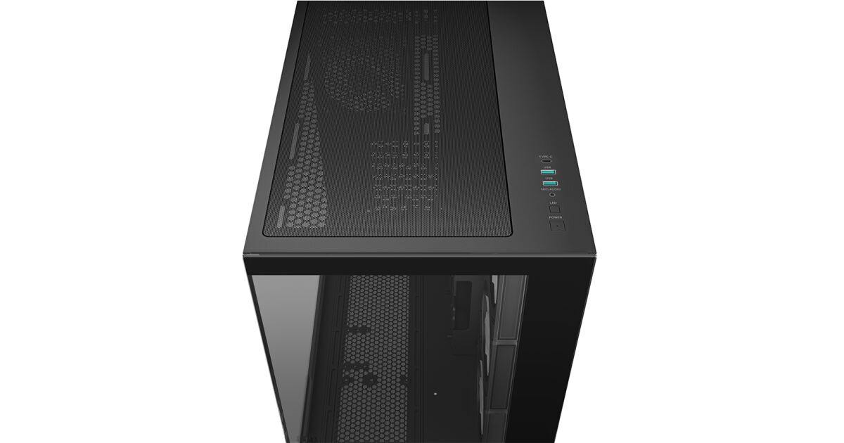 - Stilvolles Design: Schwarze Farbe, Seitenfenster zur Ansicht der internen Komponenten.