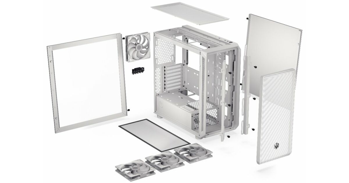 Das ENDORFY Arx 700 White ARGB ist ein geräumiges und luftiges PC-Gehäuse, das sich perfekt für High-Performance-Builds eignet - ob Gaming oder professioneller Einsatz. Ausgestattet mit einem schnellen USB-C-Anschluss und ausreichend Platz für 8 Lüfter, ist das Gehäuse mit Full-Size-ATX-Motherboards kompatibel und unterstützt Radiatoren bis zu 360 mm. Seine weiße Farbe und die ARGB-Hintergrundbeleuchtung fallen sofort ins Auge.