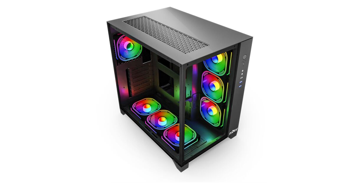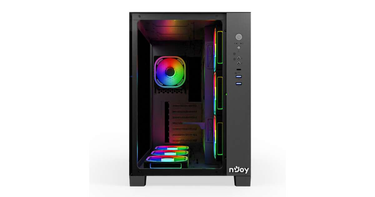 Das NJOY AURA Gehäuse ist die perfekte Wahl für alle, die ein stilvolles, voll ausgestattetes und effizientes Gehäuse für ihren Computer suchen. Die beeindruckende ARGB-Beleuchtung und das hervorragende Kühlsystem garantieren maximale Leistung und ein spektakuläres Aussehen.