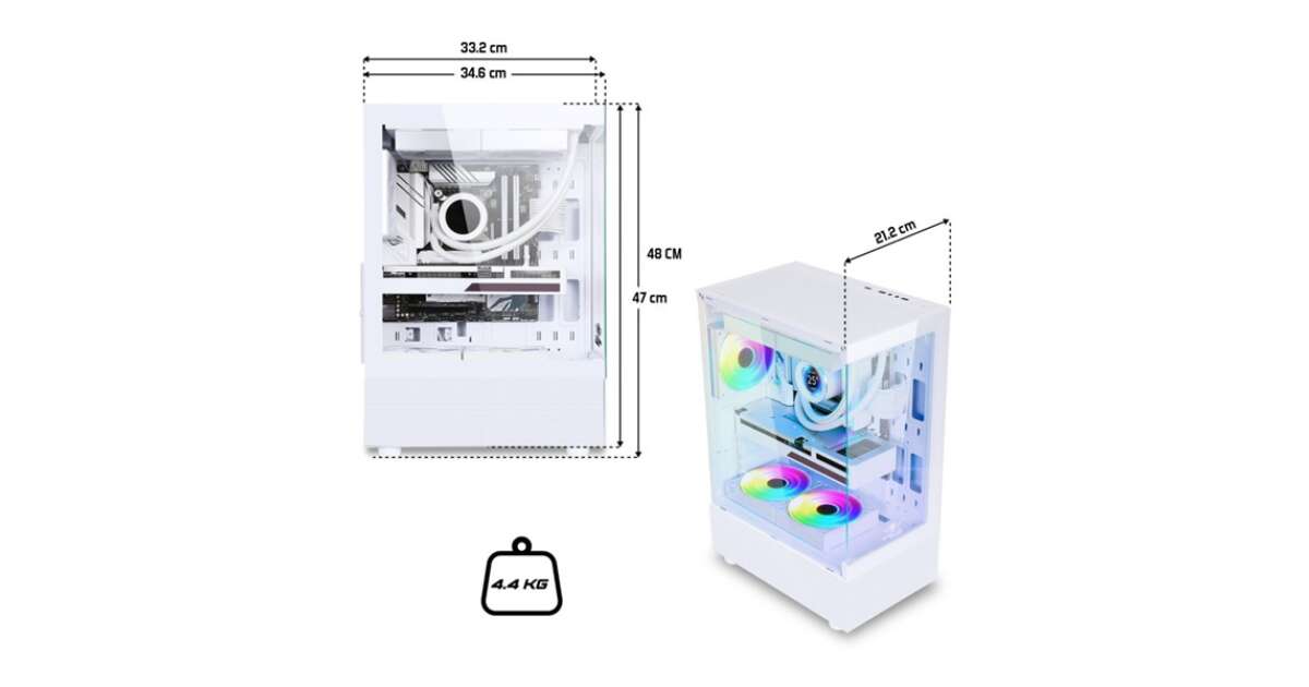 Dieses beeindruckende weiße Spirit of Gamer SPECTRA Arctic Gehäuse ist die perfekte Wahl für deinen Gaming-PC. Dank des transparenten Seitenteils kannst du deine individuelle Konfiguration zeigen, während die eingebauten RGB-Lüfter für atemberaubende Lichteffekte sorgen. Der geräumige Innenraum bietet ausreichend Platz für die modernsten Komponenten.