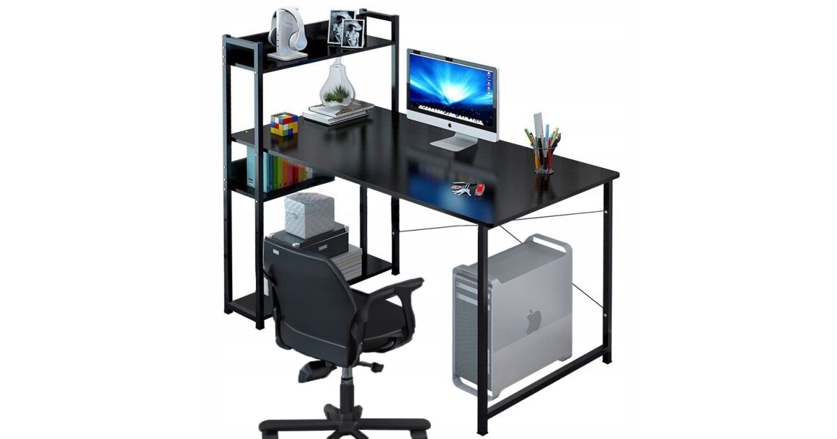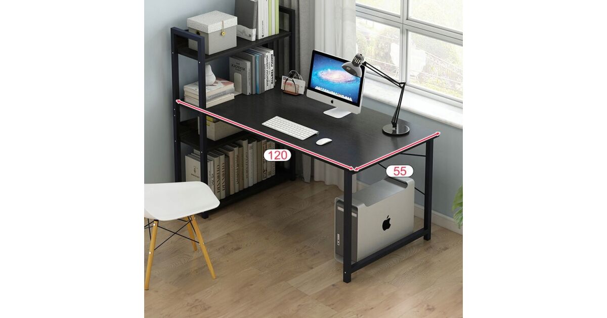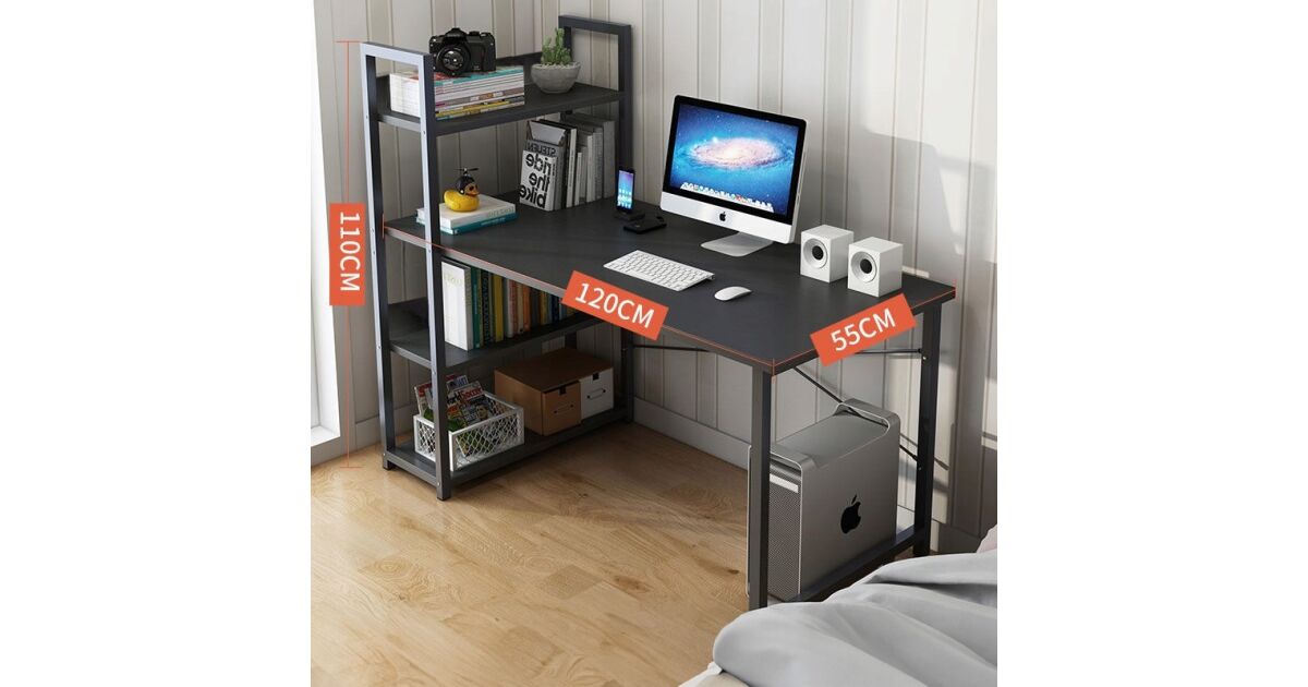 Loft Gamer Schreibtisch mit Bücherregal - Schwarz, 120 cm - Ideal für Home Office und Gaming 🎮