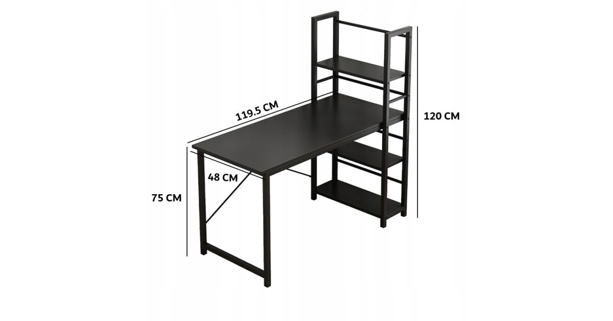 Fodym Computertisch, Schreibtisch SCHWARZ MIT INDUSTRIELLEN REGALEN 120 CM Beschreibung