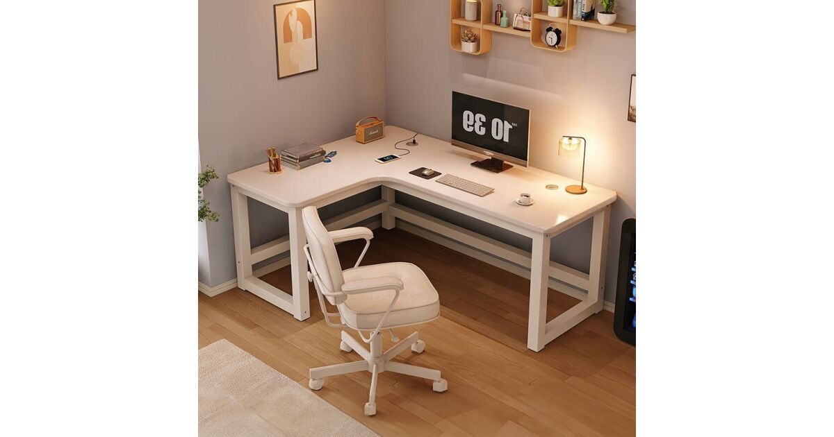 Großer, moderner, weißer, in die Ecke stellbarer Computertisch im Loft-Stil, 120 cm