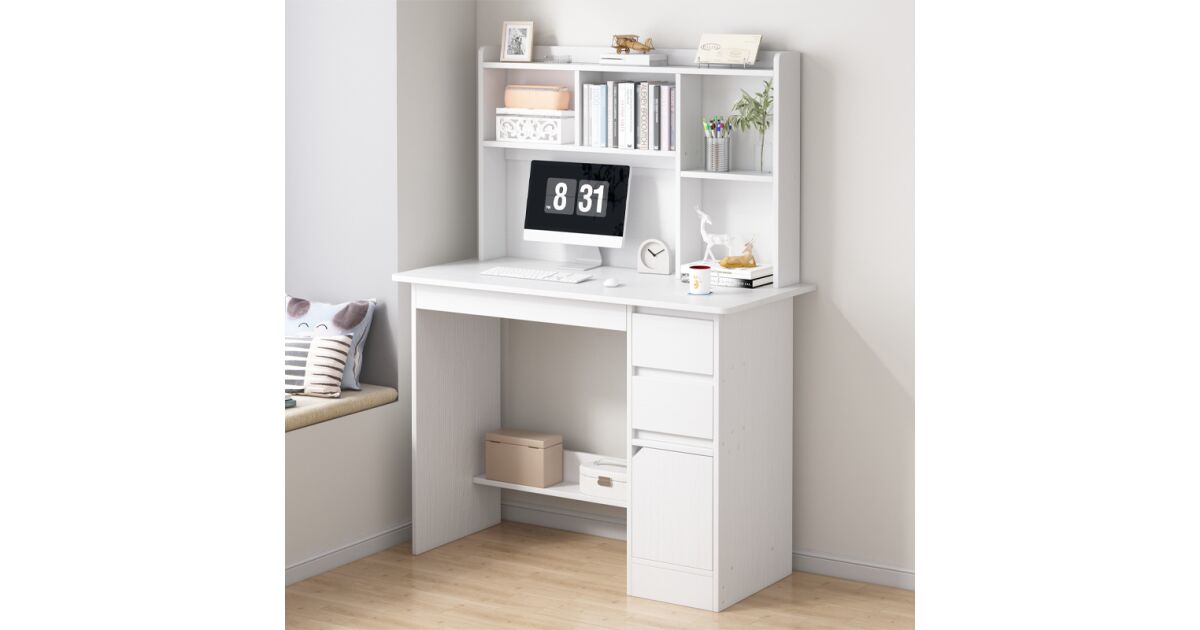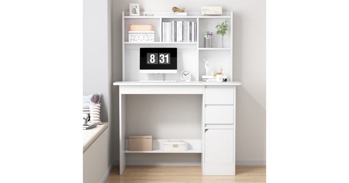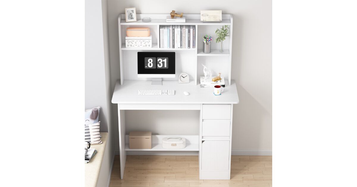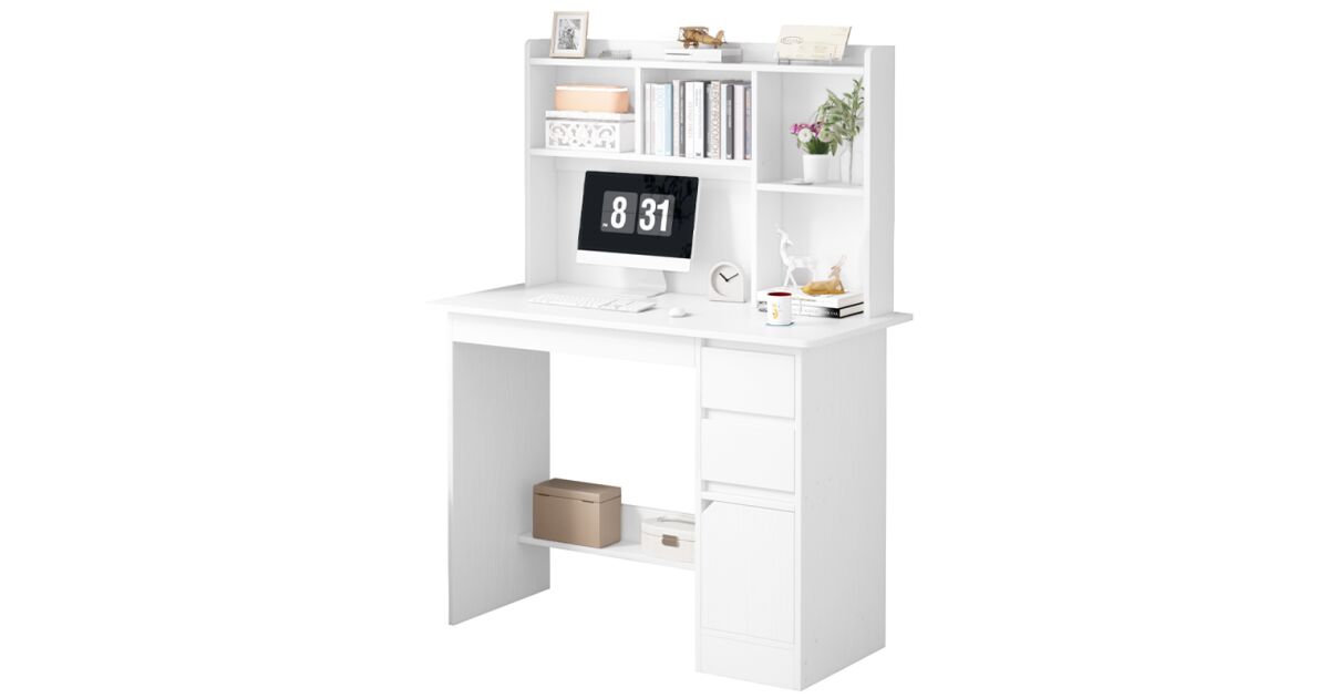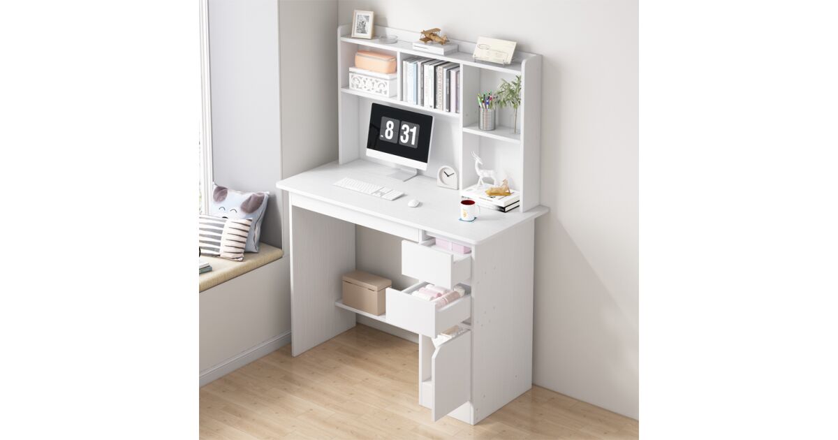 Fodym Jugend-Computertisch Loft Tisch Weiß mit Bücherregal Modern Groß 100 cm 📚