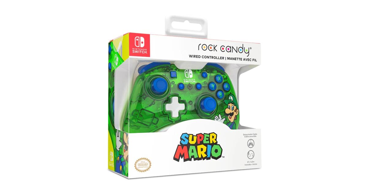 PDP Rock Candy: Luigi Lime Blau, Grün, Durchscheinend USB Gamepad Analog / Digital Nintendo Switch, Nintendo Switch Lite, Nintendo Switch OLED