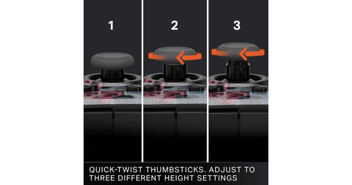 - Twist Thumbstick Technologie: 🎛️ Passe die Höhe der Thumbsticks während des Spiels an, um die perfekte Kontrolle zu erhalten. 3 Höheneinstellungen (Standard, Medium, Tall) für ein personalisiertes Erlebnis.
