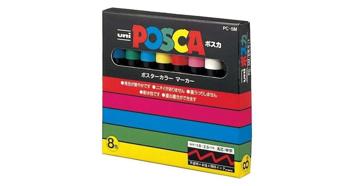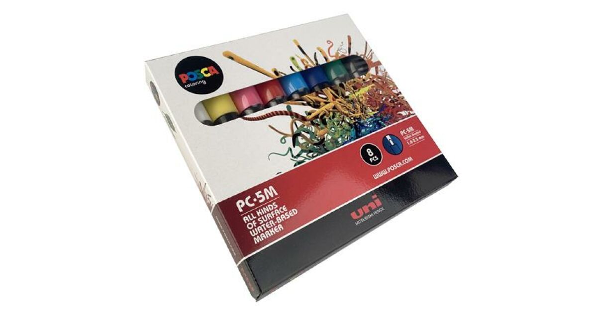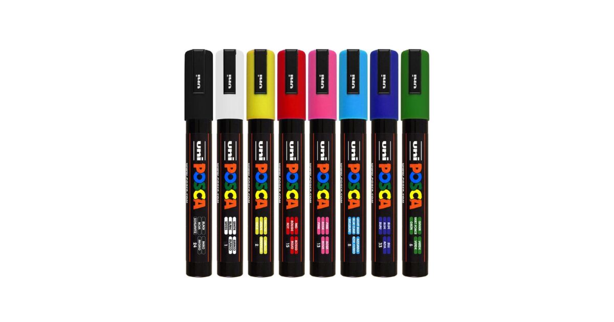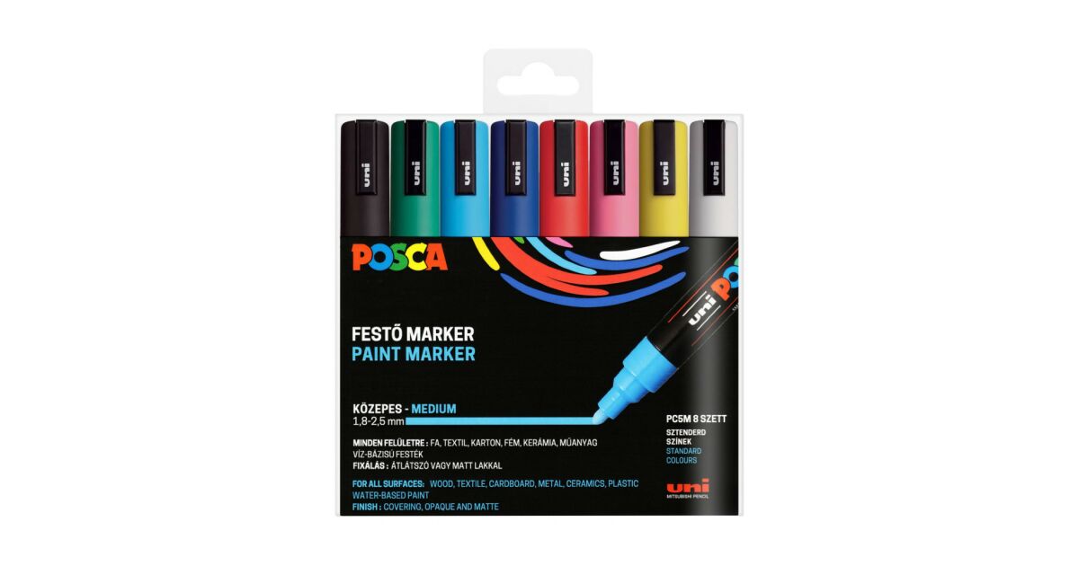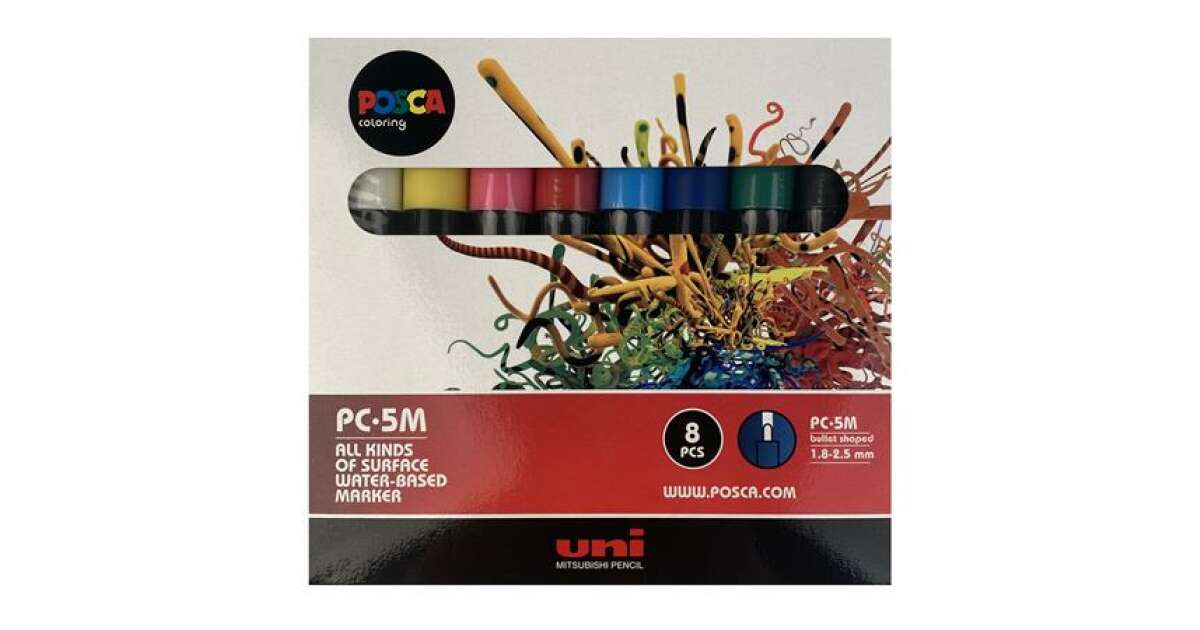 -uni Posca PC-5M Dekormarker-Set, 8 Stück, umkehrbare und austauschbare Spitze 1,8–2,5 mm, Farbe auf Wasserbasis, UV-beständig Beschreibung