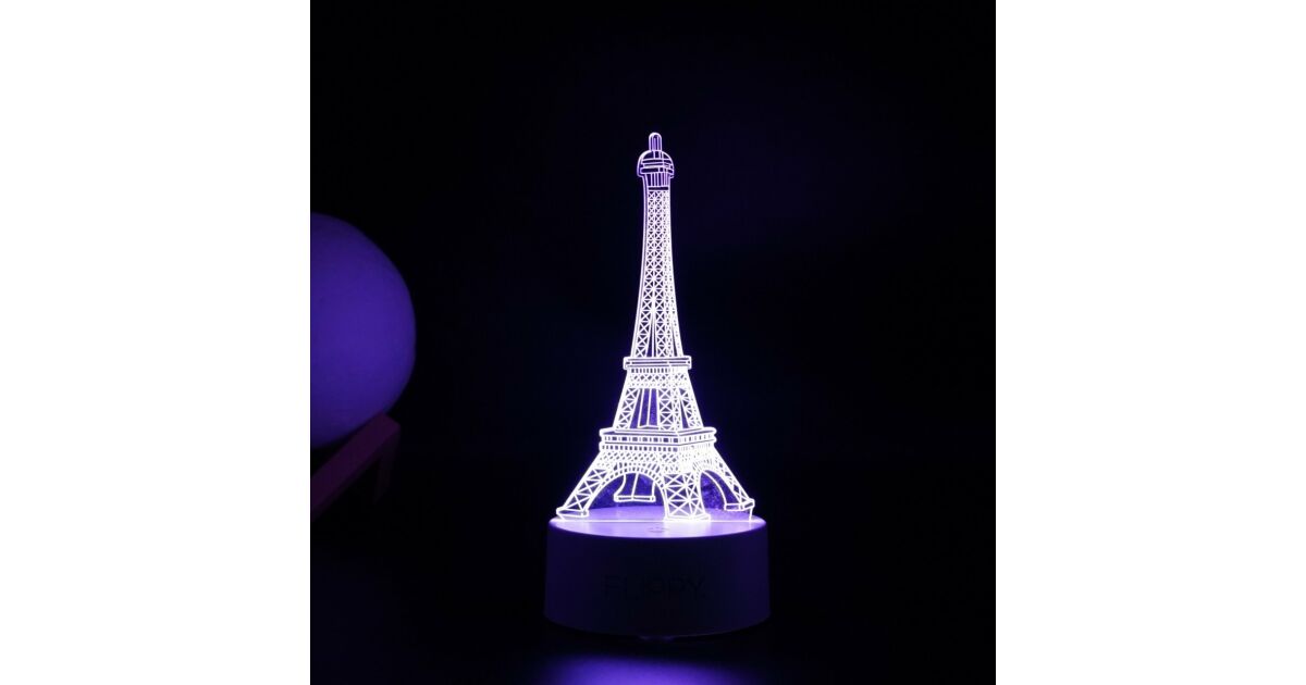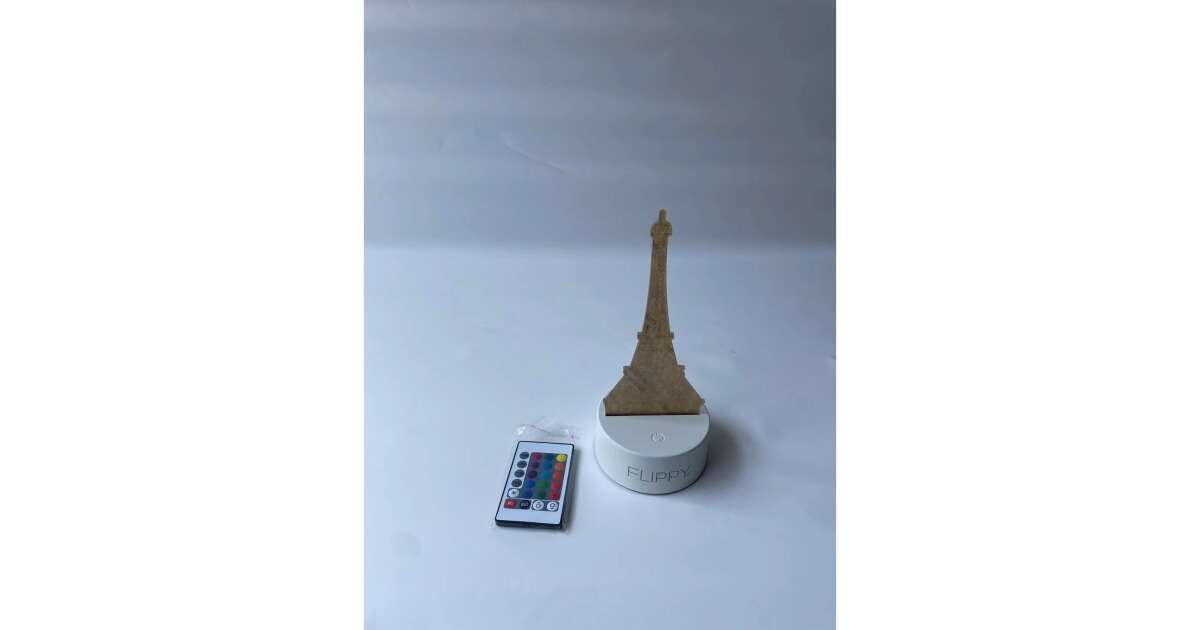 -Dekorative LED-Lampe, Flippy, 3D, Eiffelturm, aus Acrylmaterial und mehrfarbigem Licht, weiß Beschreibung
