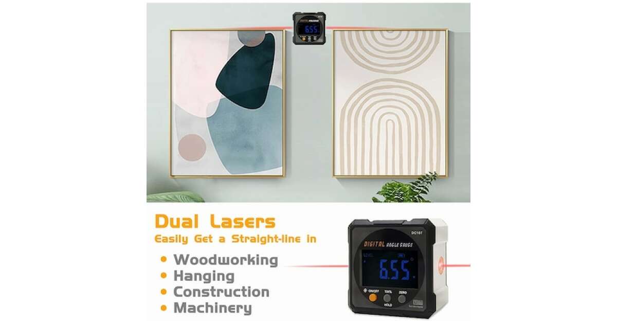 Dieser digitale Winkelmesser mit Laserzielvorrichtung hilft Ihnen bei der genauen Messung von Winkeln, sei es bei der Holzbearbeitung, Metallverarbeitung oder beim Aufhängen von Bildern. Dank der eingebauten Magnete lässt er sich leicht an Metalloberflächen befestigen, sodass Sie bei den Messungen beide Hände frei haben. ✨