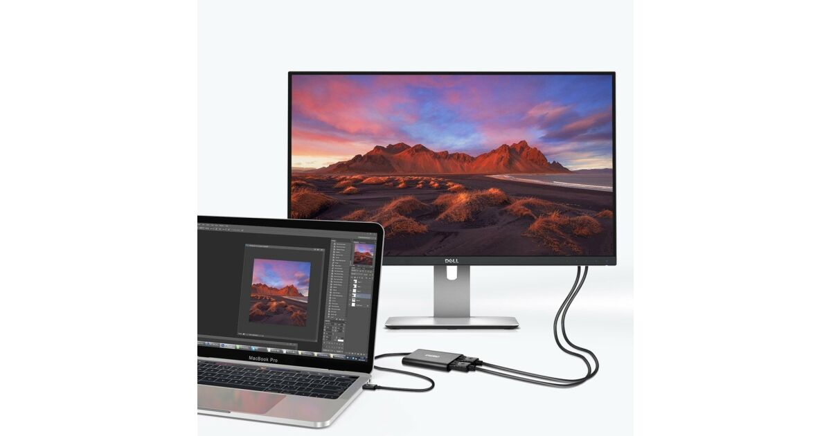 Mit dem Choetech Thunderbolt 3 Dual DisplayPort Adapter kannst du deinen Arbeitsbereich mühelos erweitern und die Vorteile der Multi-Monitor-Nutzung genießen!