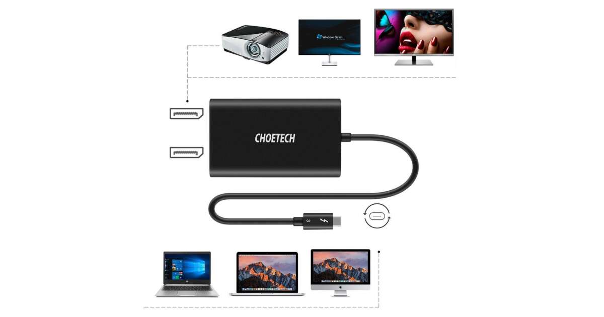 Choetech Thunderbolt 3 Dual DisplayPort Adapter: Schließe zwei 4K-Monitore über einen einzigen USB-C-Anschluss an 🖥️