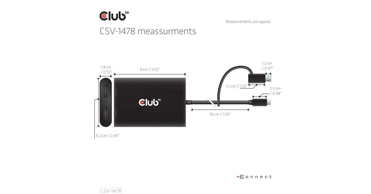 CLUB3D CSV-1478 Videoverteiler USB Typ-C 2x DisplayPort Beschreibung