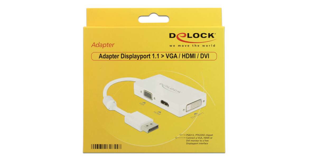 -Delock 62655 Displayport 1.1 Stecker > VGA / HDMI / DVI Hülse passiver weißer Adapter Beschreibung