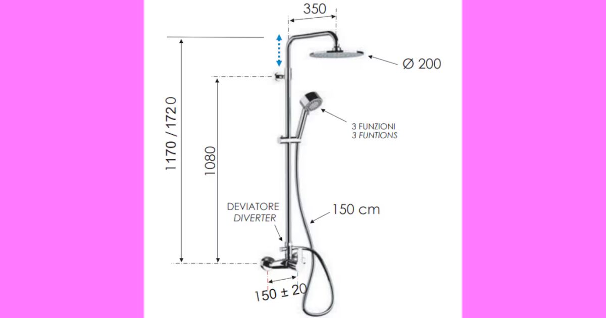 Remer W37AEC20 Duschset, Teleskopsäule, 20cm Duschkopf, 3-Funktions-Handbrause, Chrom-ABS Beschreibung