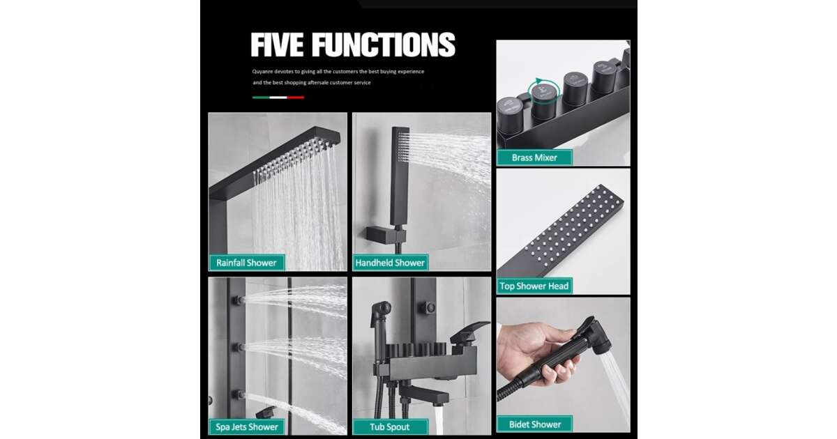 Blackswan Duschpaneel: 5 Funktionen, Matt Schwarz, 103 cm - Genießen Sie das perfekte Duscherlebnis! 🚿