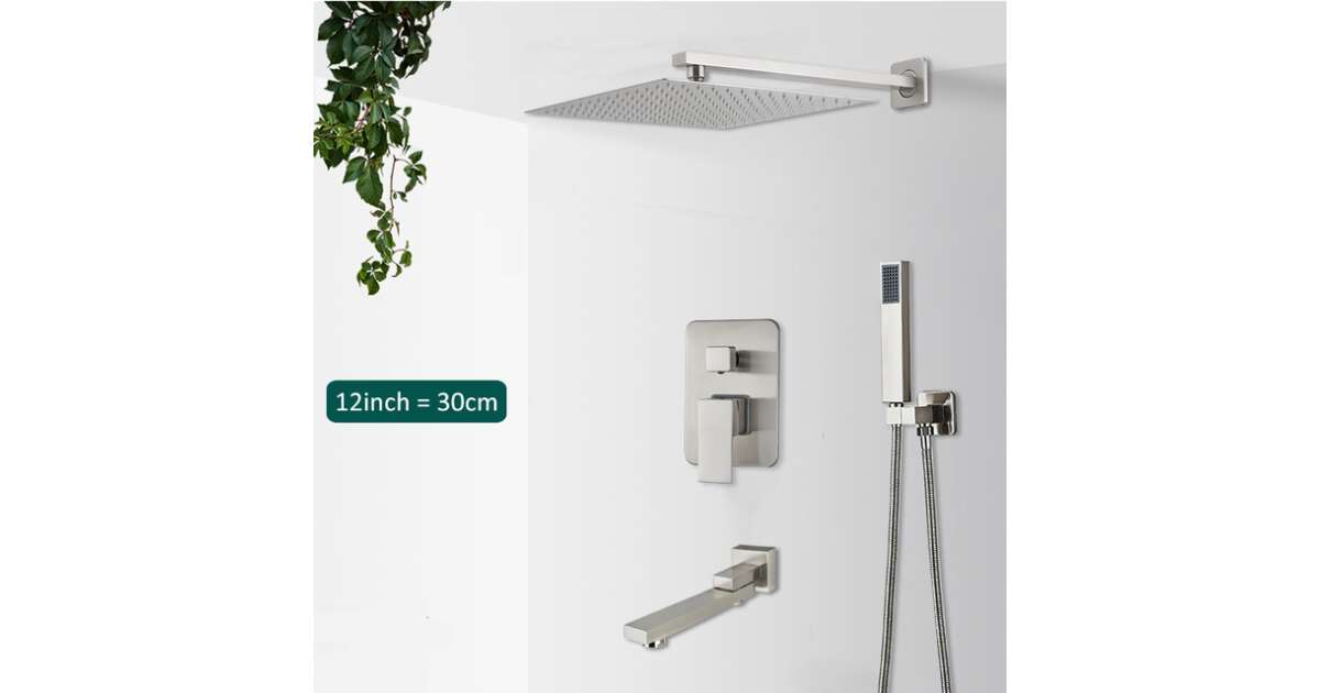 Duscharmaturen-Set, Blackswan, Typ M175, Modell Nickel matt, mit 3 Wege und beweglichem Wasserhahn, Größe 30 cm Beschreibung