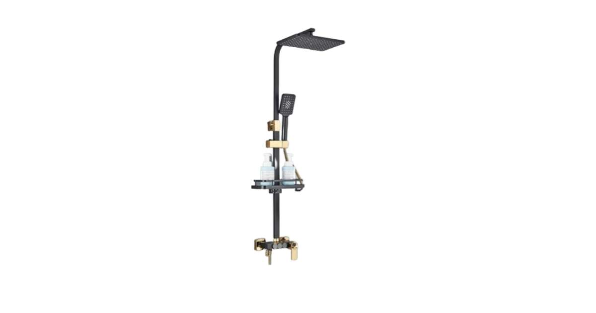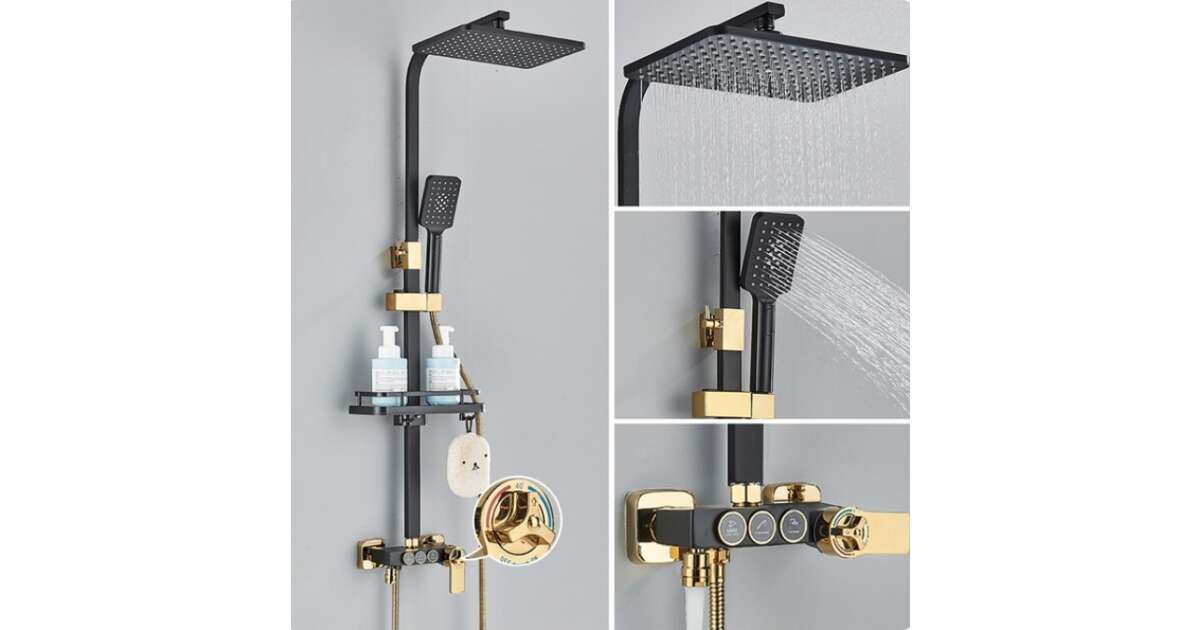 Diese stylische Blackswan Duschssäule ist 116 cm hoch und verleiht Ihrem Badezimmer mit ihrer Kombination aus mattem Schwarz und glänzendem Gold einen modernen und eleganten Look. Mit dem 3-funktions Duschkopf und dem Thermostat ist eine komfortable und präzise Temperaturregelung gewährleistet. Dank des praktischen Ablagefachs haben Sie Duschgel und Shampoo immer griffbereit.