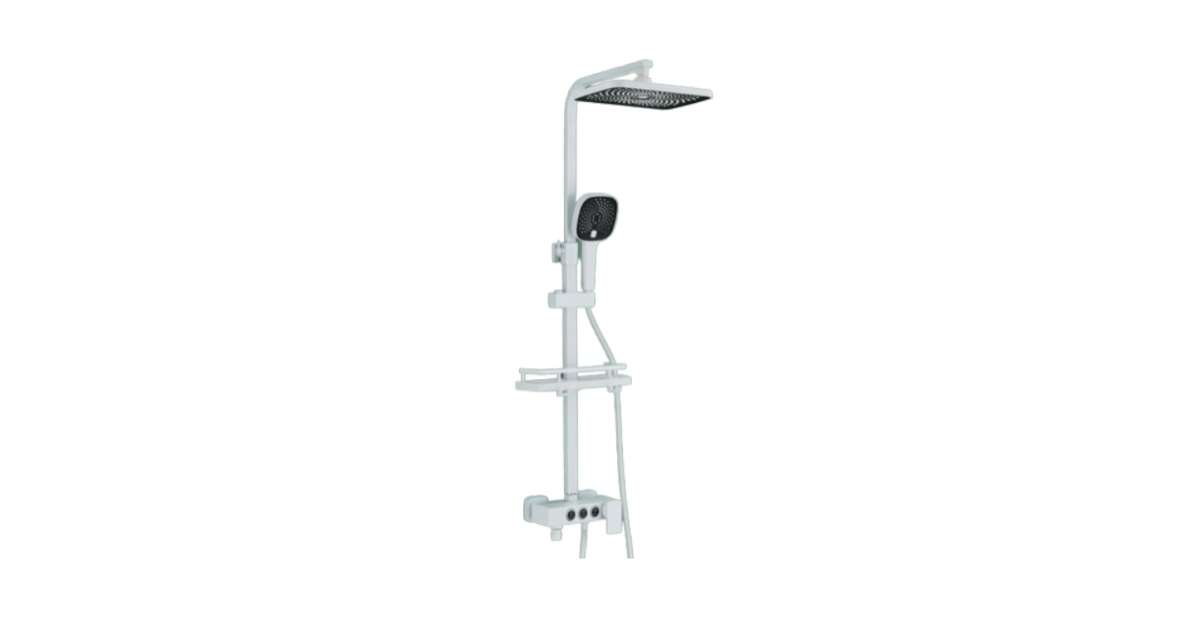 Duschsäule, Blackswan, Typ M229, weißes Modell, mit 3-Wege-Handbrause vom Typ SPA und verdecktem Möbelhahn, Größe 116 cm Beschreibung