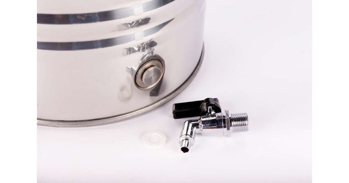 - Der eingebaute Hahn erleichtert das Ausgießen von Flüssigkeiten.