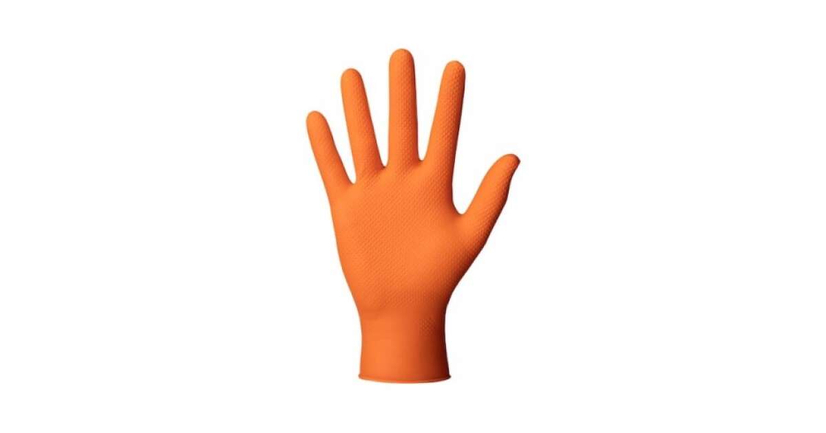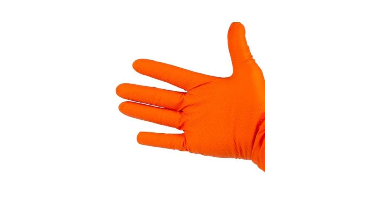 Satz orangefarbener Nitrilhandschuhe, strukturiert GOGRIP, Satz mit 50 Stück XL Beschreibung