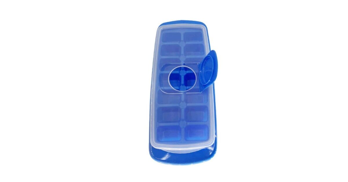 -Flippy Eiswürfelform, 14 Würfel, wiederverwendbar, lebensmittelechter Kunststoff, mit Deckel, Einfüllöffnung, rechteckig, 29,5 x 12,5 x 4 cm, blau Beschreibung