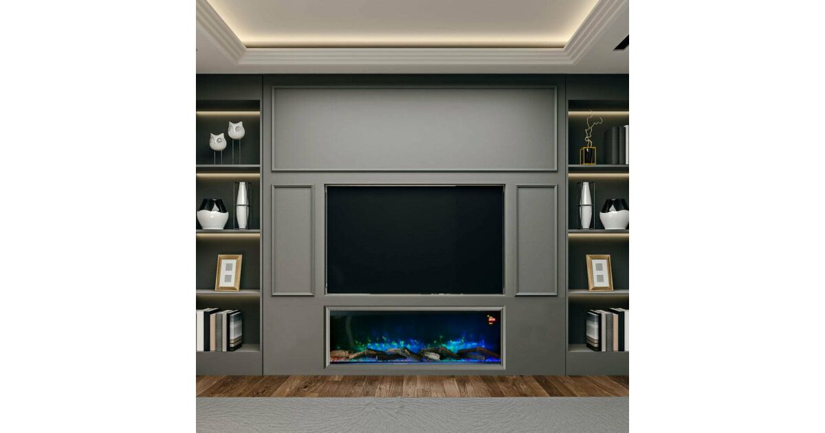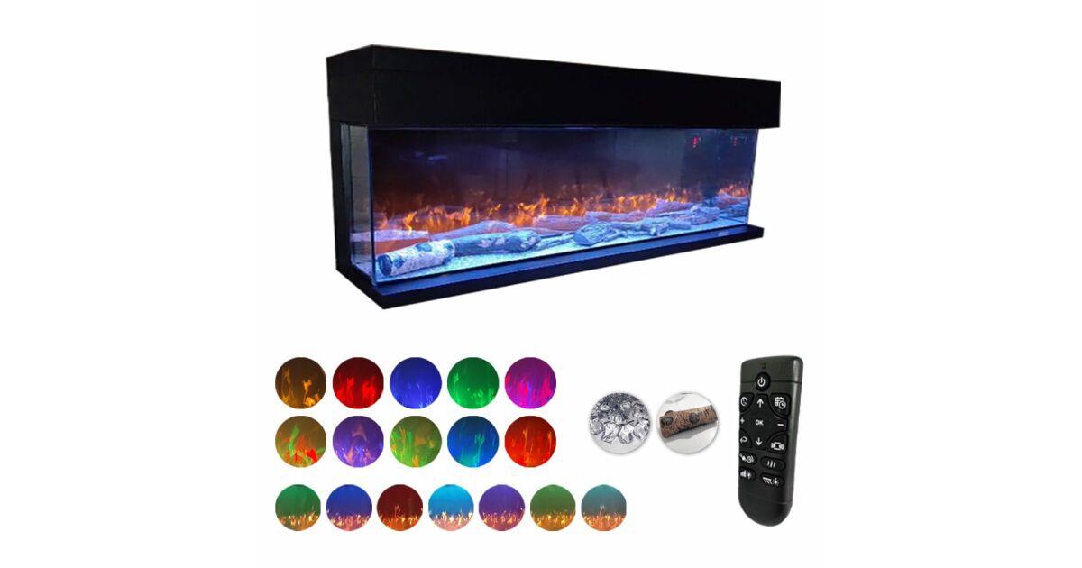 3-seitiger Elektrokamin ElectricSun VISTA medium, mit Soundeffekt, wandmontiert, freistehend oder eingebaut, 7 Farbeinstellungen, L153xH50cm