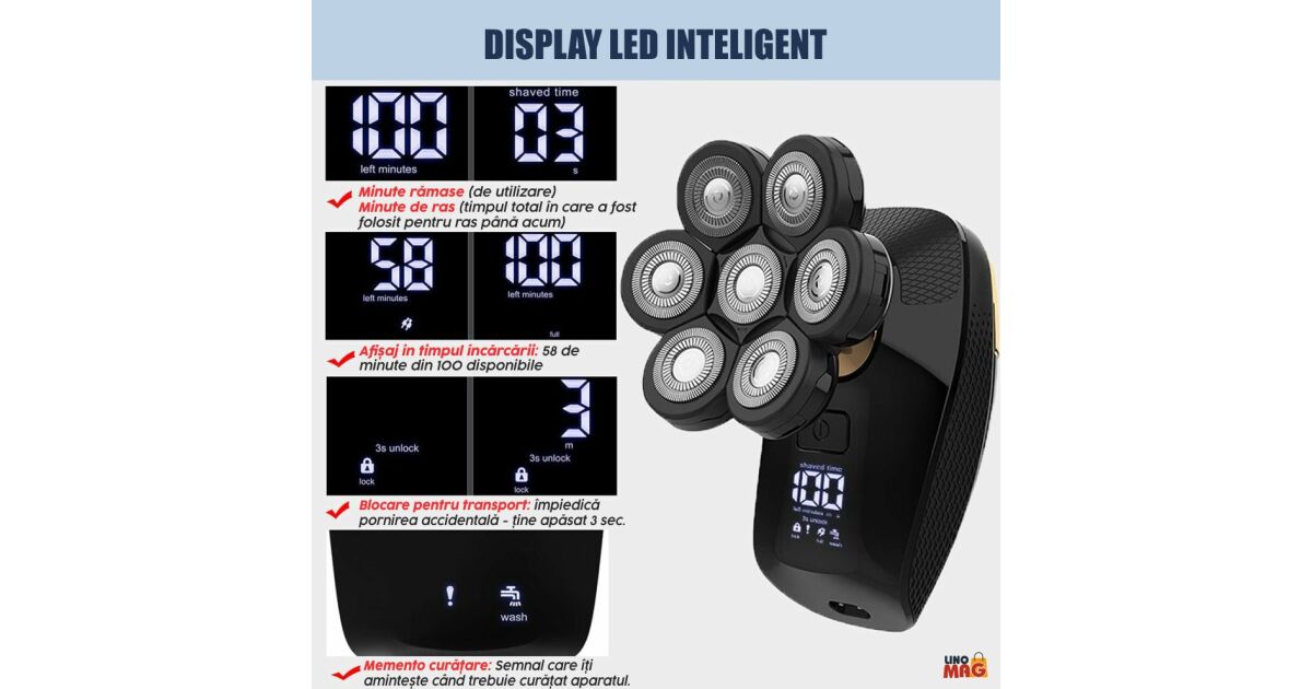 Linomag® Multifunktions-Elektrorasierer, professionell, 7D 5 in 1 mit flexiblen rotierenden Köpfen, LED-Display, wasserdicht, per USB wiederaufladbar, für Haare, Bart, Nase und Kontur, Schwar