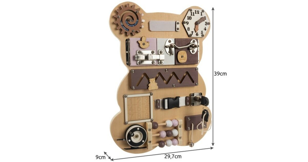 Dieses hübsche Entwicklungsbrett in Form eines Teddybären bietet 14 verschiedene Aktivitäten, mit denen Kinder ihre Feinmotorik, Konzentration und Problemlösungsfähigkeiten entwickeln können. Die abwechslungsreichen Aktivitäten garantieren stundenlangen Spiel- und Lernspaß. Positive Rückmeldungen zeigen, dass Kinder das Brett lieben und stundenlang damit spielen können.