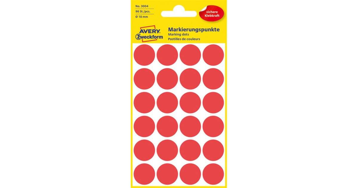 Avery Zweckform Etiketten 18mm, rot, 24 Etiketten, zum Markieren, Packung mit 4 Stück, 3004, zum Handschreiben Kaufen: