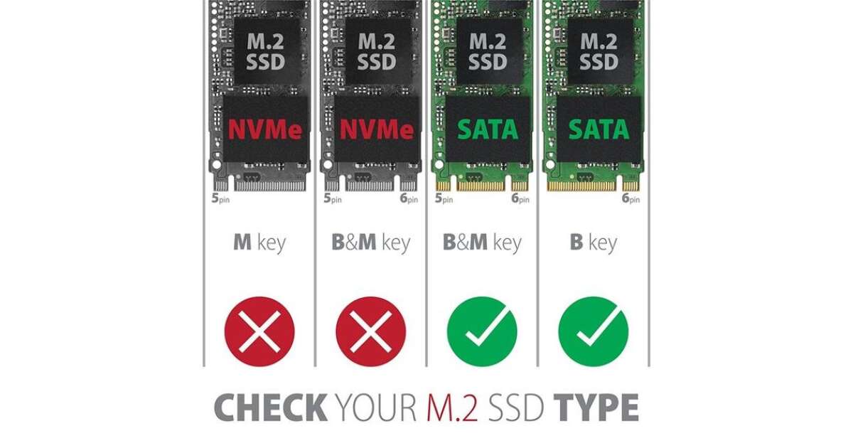 Es ist wichtig, den Typ der M.2 SSD zu überprüfen, um die Kompatibilität sicherzustellen. Die Karte unterstützt SATA M.2 SSDs mit B&M- oder B-Key.