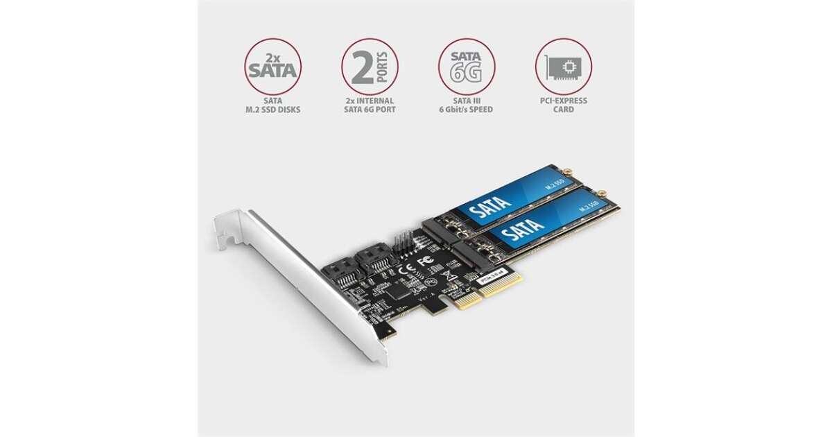 Axagon PCIE SATA/M.2 Erweiterungskarte: 2x SATA + 2x M.2 SSD-Anschluss 💾