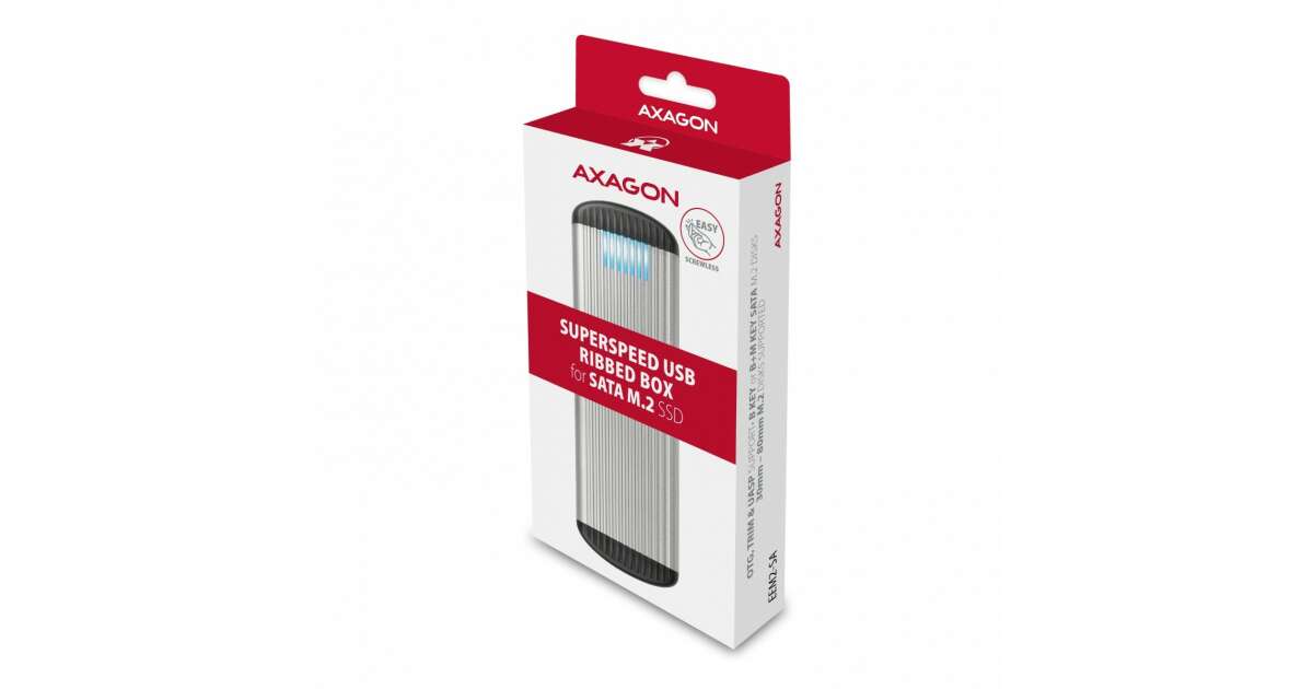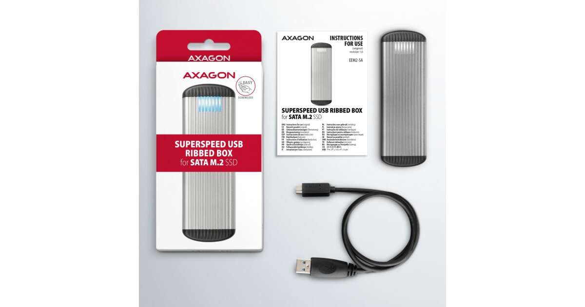 AXAGON EEM2-SA USB micro-B 3.2 Gen 1 - M.2 SATA SSD Gehäuse, Werkzeuglos - gerippt