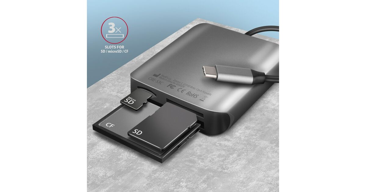 Der interne 3,5"-USB-3.0-Hochgeschwindigkeitsleser CRI-S3 SUPERSPEED von AXAGON stattet Ihren Desktop-Computer mit der Fähigkeit aus, die gängigsten Speicherkarten zu lesen und zu beschreiben.; Dank der USB 3.0-Schnittstelle können moderne CF UDMA- oder SD UHS-I-Karten Daten mit deutlich höherer Geschwindigkeit als bei Standard-USB 2.0-Lesegeräten kopieren.; Der Hochgeschwindigkeits-USB 3.0-Anschluss an der Vorderseite des Lesegeräts ist für den schnellen Anschluss beliebiger USB-Geräte ausgelegt.; Die fünf Steckplätze unterstützen direkt alle gängigen Speicherkartenformate wie microSD/SDHC/SDXC, SD/SDHC/SDXC, MS/MS Duo, CF und xD, ohne dass weitere Adapter erforderlich sind.; Über die fünf Steckplätze des Lesegeräts können Daten schnell und bequem zwischen den Karten übertragen werden.; Die schlichte, sauber aussehende Frontplatte kommt ohne Logo aus und passt perfekt zu jedem Computer.; Eine angenehm hell leuchtende grüne LED zeigt an, dass die Karte korrekt eingesteckt ist und die Daten übertragen werden. Ohne die Karte leuchtet die LED nicht unnötig.; Das hervorragende Design des Metallgehäuses garantiert einen problemlosen Einsatz ohne elektromagnetische Störungen.; ; Kartenleser:; - ein Lesegerät mit fünf Steckplätzen, das folgende Formate unterstützt; ; :- Micro-SD-Steckplatz: microSD / microSDHC / microSDXC / TransFlash; ; ,- XD-Steckplatz: xD Picture Card, xD Type M, xD Type M+, xD Type H, SmartMedia-Karten werden nicht unterstützt.; -; CF Sockel: CompactFlash Typ I, CF Typ II, Microdrive, Magicstor; ; ,- MS Sockel: Memory Stick, MS Pro, MS Duo, MS Magic Gate, MS Pro Duo Magic Gate, Memory Stick Pro HG Duo, mit Adapter M2 (MS Micro); ; ,- SD/MMC Sockel: SecureDigital, SDHC, SDXC, MultiMedia Card, MMC 4.0, MMC Dual Voltage, MMC mobile, RS-MMC, mit Adapter miniSD, miniSDHC, MMC Micro; ; ,- Unterstützung der Flash-Kartenspezifikation ; ; .; ; 2 GB),; ; - SD 2.0 (SDHC - Secure Digital High Capacity, max. 32 GB),; ; - SD 3.0 (SDXC - Secure Digital eXtended Capacity, bis zu 2TB),; ; - MMC 3.x/4.0/4.1/4.2/4.3/4.4 (8-bit),; ; - MS 1.; ; 4; 3, MS Pro 1.05, MS Pro HG 1.03, MS-XC 1.0 (bis zu 2TB),; ; - CF 5.0 (UDMA 0 - UDMA 6),; ; - xD 1.2.; ; - 5 LUN - fünf Speichereinheitensymbole werden in den Dateimanagern angezeigt - Möglichkeit zum direkten Datentransfer zwischen Karten in allen Leseschächten; - unterstützt die Dateiformate FAT 12/16/32/64, NTFS, exFAT (FAT 64).; ; Weitere Merkmale:; - Kompatibel mit USB 3.0 und abwärtskompatibel mit USB 2.0; ; .- Unterstützt Übertragungsgeschwindigkeiten von 12/480/5000 Mb/s (full / high / super speed); ; .- Plug and Play, Hot Plug und Hot Swap Unterstützung; ; .- Stromversorgung über USB-Bus; ; .- High Speed USB 3.0-Anschluss ist an der Vorderseite des Lesegeräts herausgeführt; ; .- Für die Konnektivität ist das Lesegerät mit zwei USB 3.0-Buchsen des Typs A an der Rückseite ausgestattet; ; .- Im Lieferumfang ist ein USB 3.0-Kabel mit 2x USB 3.0 Typ A-Stecker/Buchse (20-polig) enthalten, das das Lesegerät mit dem internen 20-poligen (2 x 10-poligen) USB 3.; ; Die LED zeigt eine kontinuierliche Verbindung an, wenn die Karte korrekt eingesteckt ist, während die Datenübertragung durch ein blinkendes Licht angezeigt wird.; ; Die sauber aussehende Frontplatte ohne Logo auf der Frontplatte passt in jedes Computergehäuse.; ; -; Das Lesegerät ist durch ein hochwertiges Metallgehäuse geschützt, das die Einhaltung der elektromagnetischen Emissionsnormen gewährleistet; ; .- Das Gehäuse des Lesegeräts ist 96,5 mm tief, Höhe und Breite passen in die 3,5"-Position.; - Gewicht: 165 g (ohne USB-Kabel).; ; ; Unterstützte Betriebssysteme:; - MS Windows XP / Vista / 7 / 8 / 8.1 / 10 oder höher, Windows Server 2003 / 2008 / 2012 / 2016 oder höher (alle 32- und 64-Bit-Windows-Systeme werden unterstützt), Mac OS X 10.x oder höher, Linux mit Kernel 2.4.x oder höher.; - Hinweis: Treiber sind in den Betriebssystemen enthalten und werden vollautomatisch installiert. Weitere Treiber müssen nicht installiert werden und sind nicht verfügbar.; ; ; Das Paket enthält:; - internes Kartenlesegerät mit schwarzer Frontplatte; ; ,- USB 3.0 50 cm Kabel; ; ,- Befestigungsschrauben,; - verpackt in einer Kartonschachtel.; Spezifikation des Herstellers:; ; Garantie: 24 Monate