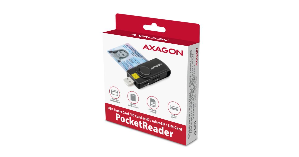 AXAGON CRE-SMP2A USB Smart Card & SD/microSD/SIM Card PocketReader