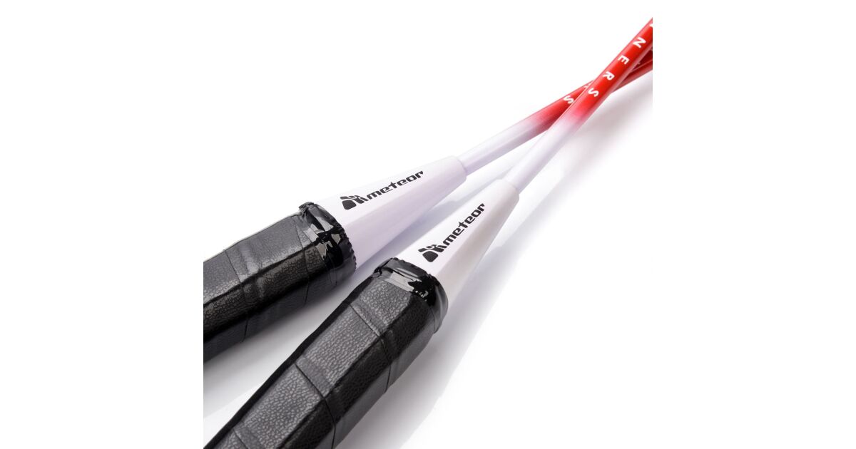 Meteor Motion Badminton-Set 2 Schläger, 3 Federbälle, Netz Rot und Weiß 20076 Beschreibung