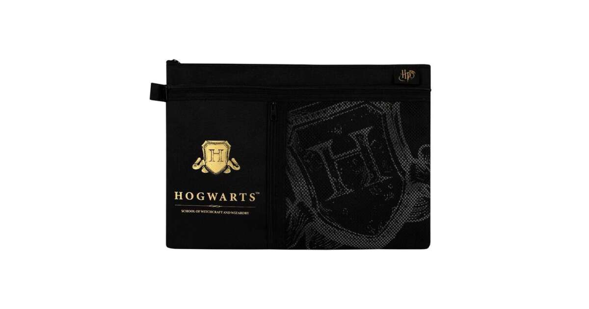 -Studienbrieftasche, Blauer Himmel, Harry Potter Studienbrieftasche mit mehreren Taschen, Hogwarts-Schild-Hülle, Schwarz Beschreibung