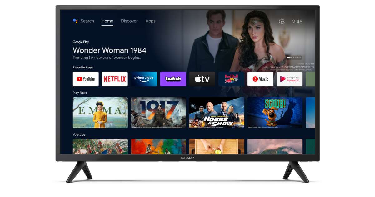 Fernseher Sharp 32FG2EA, 32-Zoll-LED-Android-Fernseher, HD 1366 x 768, 1.000.000: DVB-T/T2/C/S/S2, Active Motion 400, Lautsprecher 2 x 6 W, Dolby Digital, Google Assistant, Chromecast Built-i